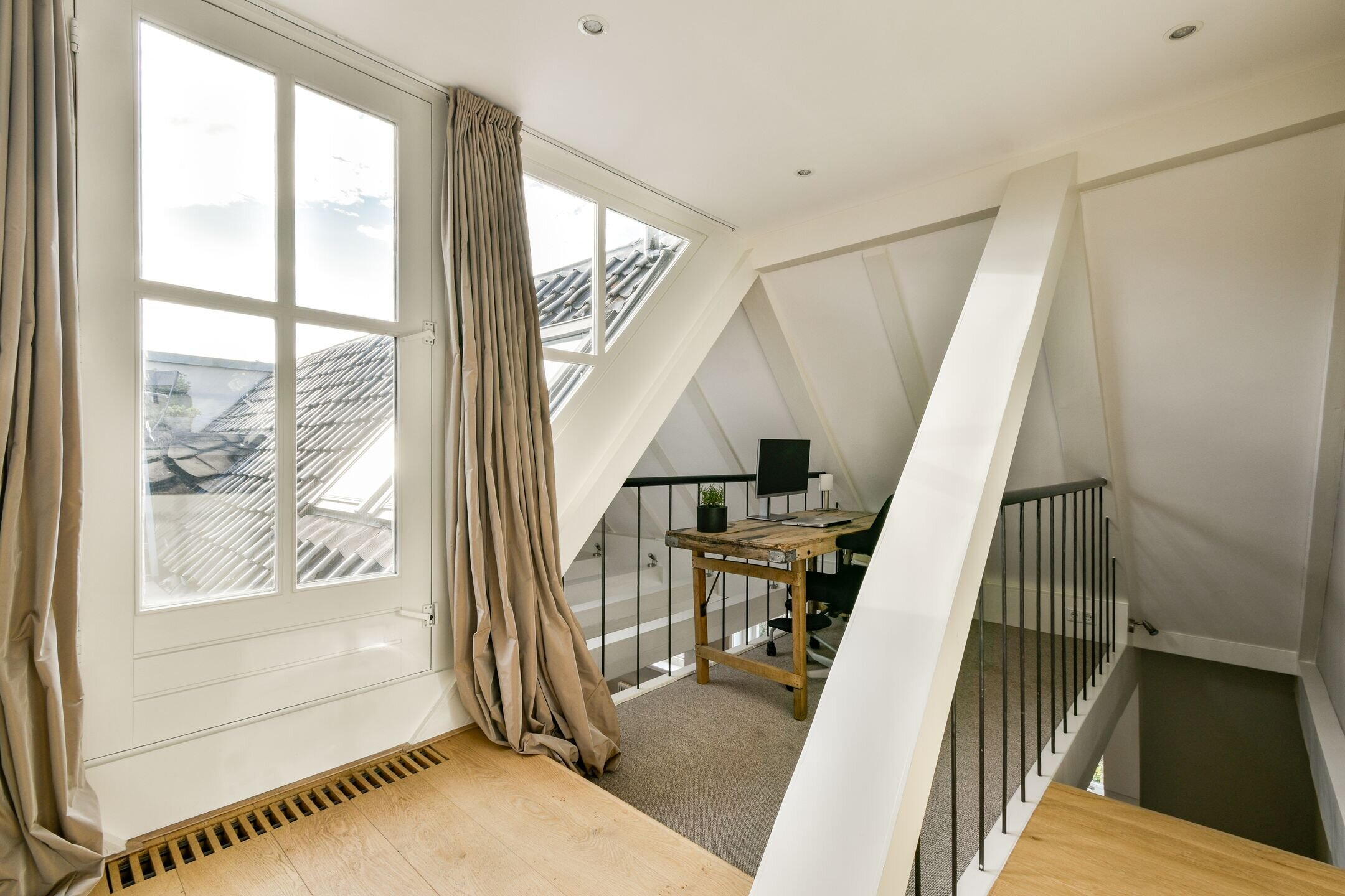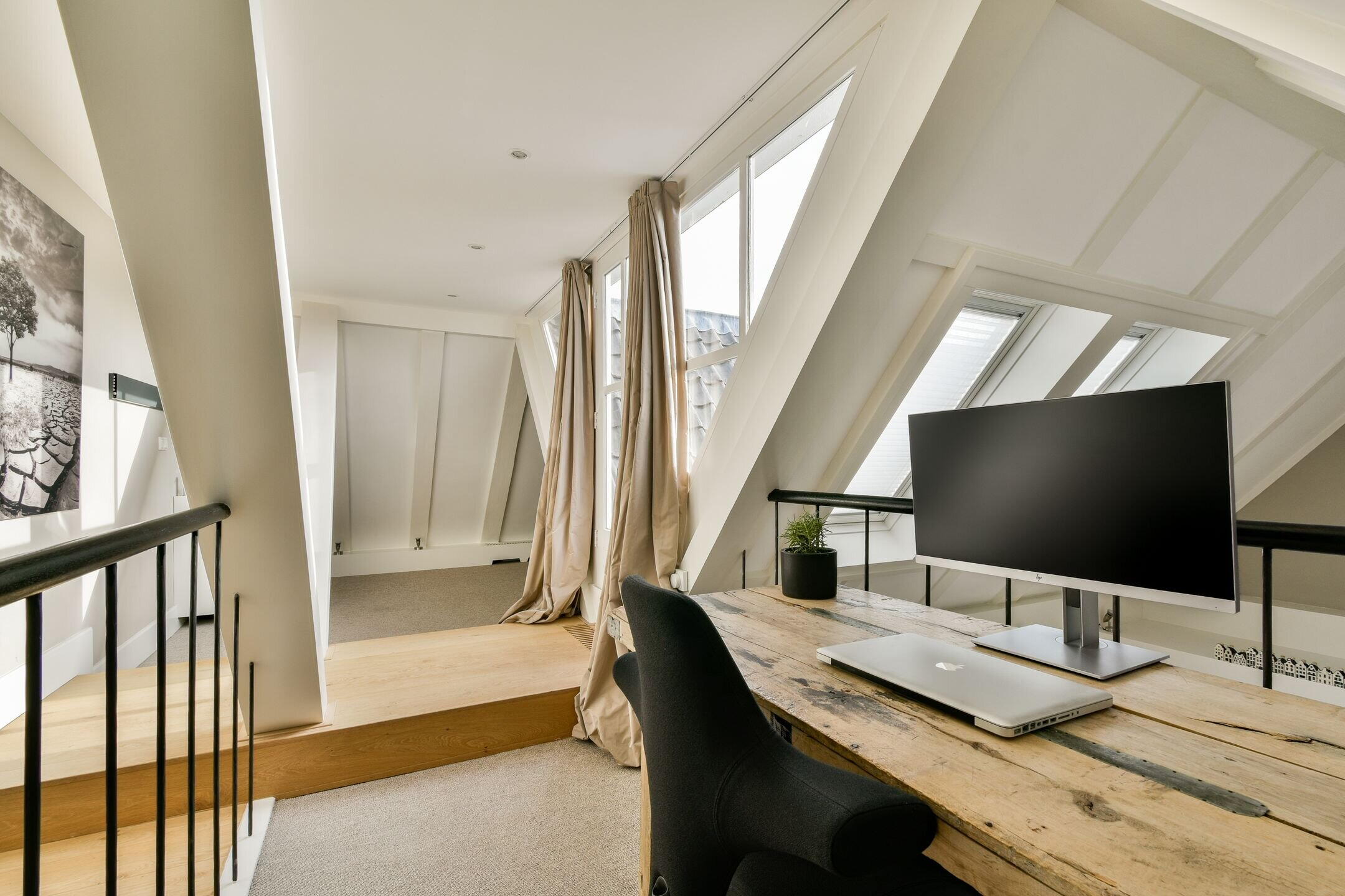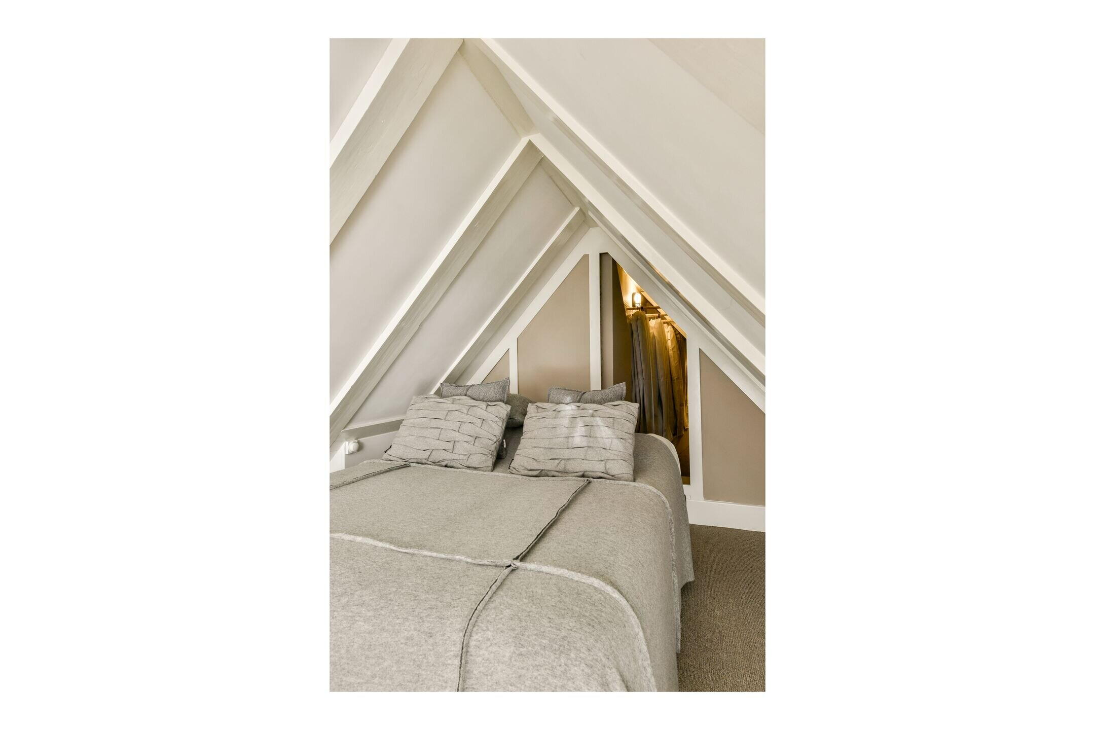 Een trap in de woonkamer leidt naar de kapverdieping, waar zich een open ruimte bevindt die ideaal is als werkplek met uitzicht over de woonkamer. Hier is tevens een tweede slaapkamer met fontein en een bergruimte, waar ook de cv-installatie is gevestigd en achter de slaapkamer is nog een inloopkast/ berging.